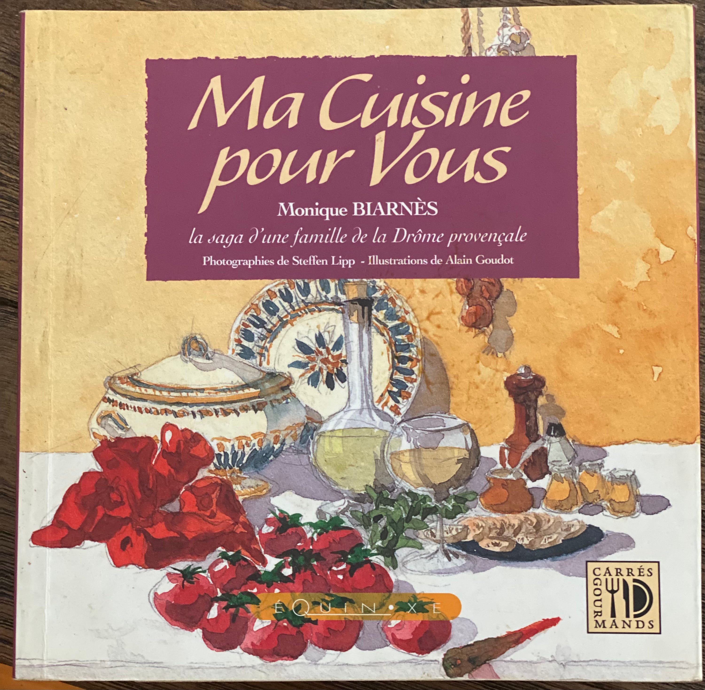 I actually learned to cook with Julia Child and The Art of French Cooking, as well as Joy of Cooking. As the youngest of four girls by six years, I wasn’t always welcome in the kitchen, so not much in the way of cooking skills were passed down to me. Then in the seventies circumstances led me to England and France. In England I found Elizabeth David’s French Provincial Cooking, in France I garnered handwritten recipes from local village women, like Tarte aux legumes from Mme Lardenois to Mme Millereux’s Pain d’Aubergine. That was my first sojourn in France, in the Var, near the Mediterranean coast. I returned to France in the late nineties and gathered a binder full of others. A French friend gave me a little cookbook called Ma Cuisine pour Vous, by Monique Bearnes. An old friend who is a superb cook gifted me with Paula Wolfertt’s The Slow Mediterranean Kitchen, to name two. I have dozens.